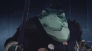 Before they enter the Carriage, however, they suddenly hear shrieking, and they see Peet charging at the Fangs with bird claws poking through holes in the socks worn on his hands. Nia quickly leads the children away as the Fangs prepare to fight Peet. Running back to the Carriage, Nia frees Podo and hands him a weapon. As Peet fights the Fangs, he orders the kids to run away. Brak turns to the children and asks them where they think they're going. Picking up a sword, Janner points it at Brak as Peet jumps at the Fang and knocks him forwards. Brak lands towards Janner and is stabbed by the blade. Nia runs to the children to protect them, but doesn't notice Critch approaching them. Nugget quickly turns to Critch and attacks the Fang's face. Gnorm turns to Podo and the two begin fighting. Gnorm eventually slices Podo's stomach, weakening the latter, and prepares to kill him. Janner quickly spots a dagger and stabs Gnorm in the back, killing the Fang.