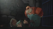 Nia and Podo are in Glipwood Jail. They're disturbed by a Fang named Velp who brings them some food. Velp starts mocking Podo when he notices him not eating. Annoyed, Podo reaches through the bars and grabs the Fang's leg, causing Velp to fall backwards. Commander Gnorm enters the room unimpressed. He orders Velp to "go sleep it off", referring to the pain, and he then tells Nia that she had him fooled for thinking she was just another pitiful soul trying to keep her children out of the Black Carriage, and Nia responds saying that is exactly what she is. Gnorm tells her that he knows about the Jewels of Anniera, and he shows her the jewels that Slarb had recovered from the Igiby Cottage. Nia asks him if he really thinks that her mother's old trinkets were the Jewels of Anniera, but Gnorm dismisses her question, believing Nia to know more that she was telling and that the Fangs will soon find the Jewels. Nia responds saying that the jewels he has right now were all the jewels she owned, and Gnorm tells her that perhaps the children "will have something more to squeal about" once the Fangs capture them. Podo points out that the kids know nothing of the jewelry, and Gnorm tells them to cut a deal while they can, because the Black Carriage was coming for them and that nothing would stop it, so they should either tell him about the jewels, or they can keep the secret and the Black Carriage will take their children as well. Podo threatens to skin Gnorm like a snake if he lays his hands on the children, but Gnorm just scoffs and leaves the room. Podo reassures Nia that the Fangs at least haven't found the children yet, and Nia thanks the Maker as she rests her head on her father's chest. Podo assumes that the kids would've made it to Oskar's by now, and that Oskar knows the plan.
