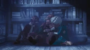 The Black Carriage speeds over to the jail as a murder of crows flies overhead in the night sky. Podo hides the dagger as he pretends that his arms are still bound. Velp and Orble enter the room and open the cell door as they prepare to lead the family into the Black Carriage. When the family are taken outside, Gnorm tells them that it is their last chance to tell him where the Jewels of Anniera are. Podo just says that it is a fine day for a ride through the country. He instantly attacks the two Fangs standing closest to him before ordering Nia and the children to run. Nia quickly punches the Fangs closest to her before fleeing with the children. Podo continues fighting the Fangs but is eventually knocked to the ground by a Fang preparing to kill him. Nia orders the Fang to stop and that if Podo is killed, she will take her secrets to the grave. Podo is taking into the Black Carriage as Nia and the children follow him.